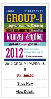 If you visit our website, first you will find our categories of books as menus in the menu bar such as Competitive Exams, Entrance Exams, General books, State Board books, Current Events. You can select the menu whatever you like to view the items of books in that particular menu. For example, if you click the Competitive Exams - menu, it will show the sub-categories of books. If you click anyone of the sub-categories such as TNPSC, UPSC, RRB etc., you will find the list of books with titles and their prices. First choose your book which you wish to purchase. There are two types of buttons given at the end of each title. You can use either of the two buttons – ‘Shop now’ or ‘View details’ to purchase that book.